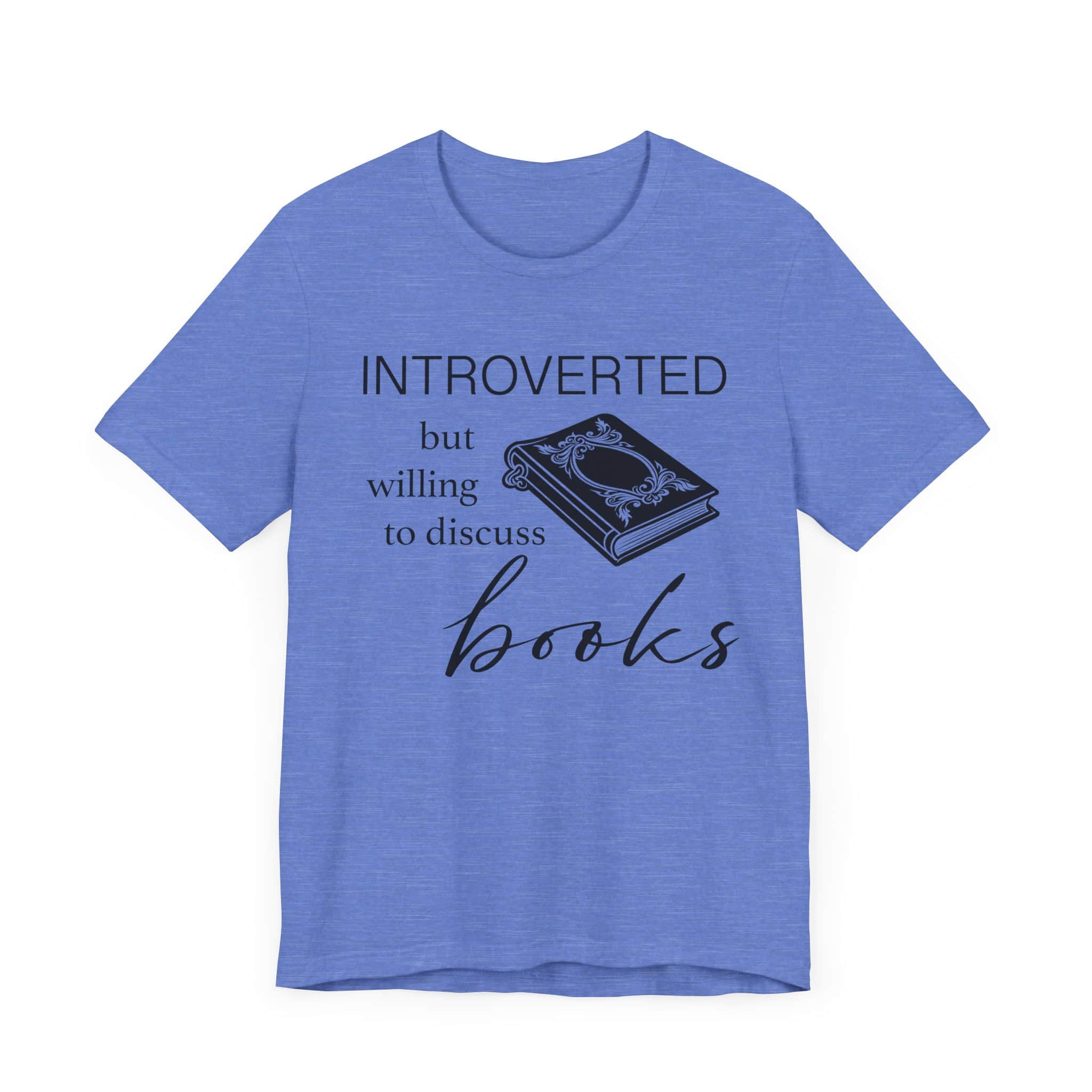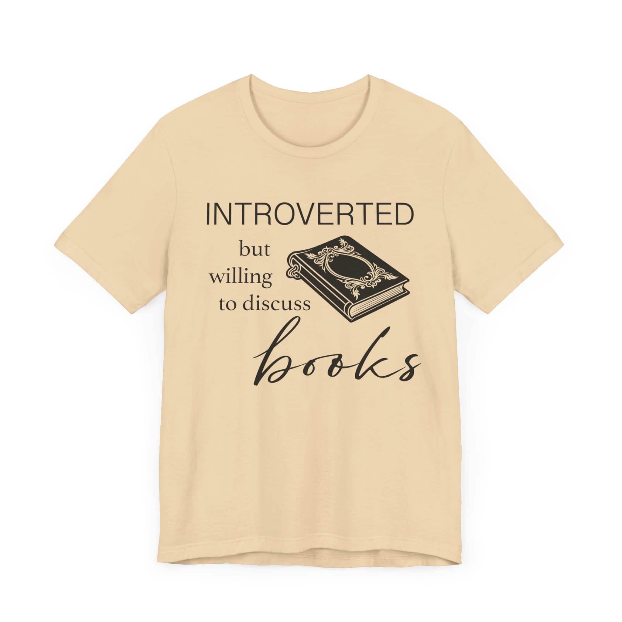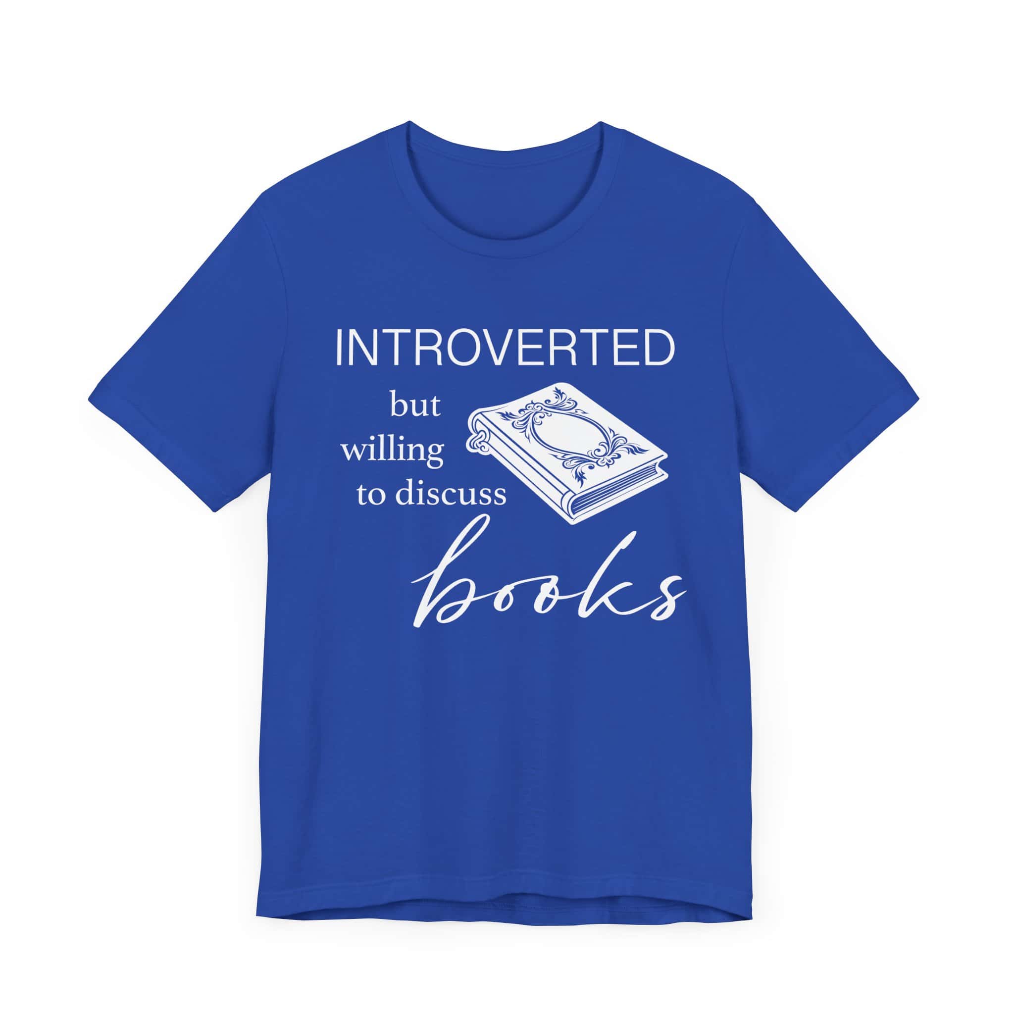 If your idea of small talk is a deep dive into fictional worlds, this shirt was made for you. The “Introverted but Willing to Discuss Books” t-shirt is the perfect blend of quiet personality and loud bookish passion.