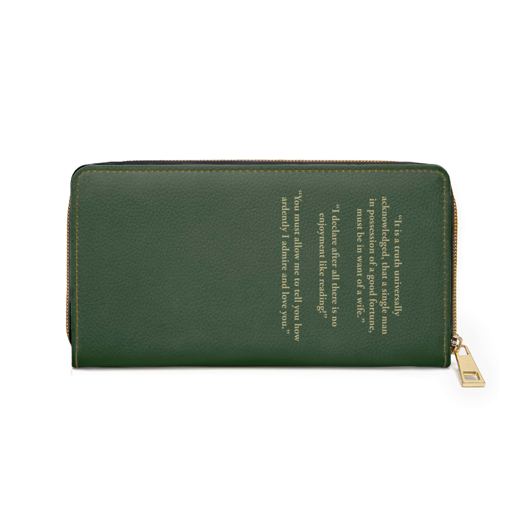 Introducing our vibrant Zipper Wallet, a perfect blend of style and functionality. This wallet is perfect for fans of books and Pride & Prejudice, with the beautifully illustrated 1894 published cover on the front and popular quotes on the back. It is it not just an accessory, but a statement piece. Whether you’re heading to class, going out with friends, or shopping for a special occasion, this wallet keeps your essentials organized while showcasing your personality. Perfect for book lovers, period drama fans, and those who appreciate a touch of literary sass in their everyday essentials.