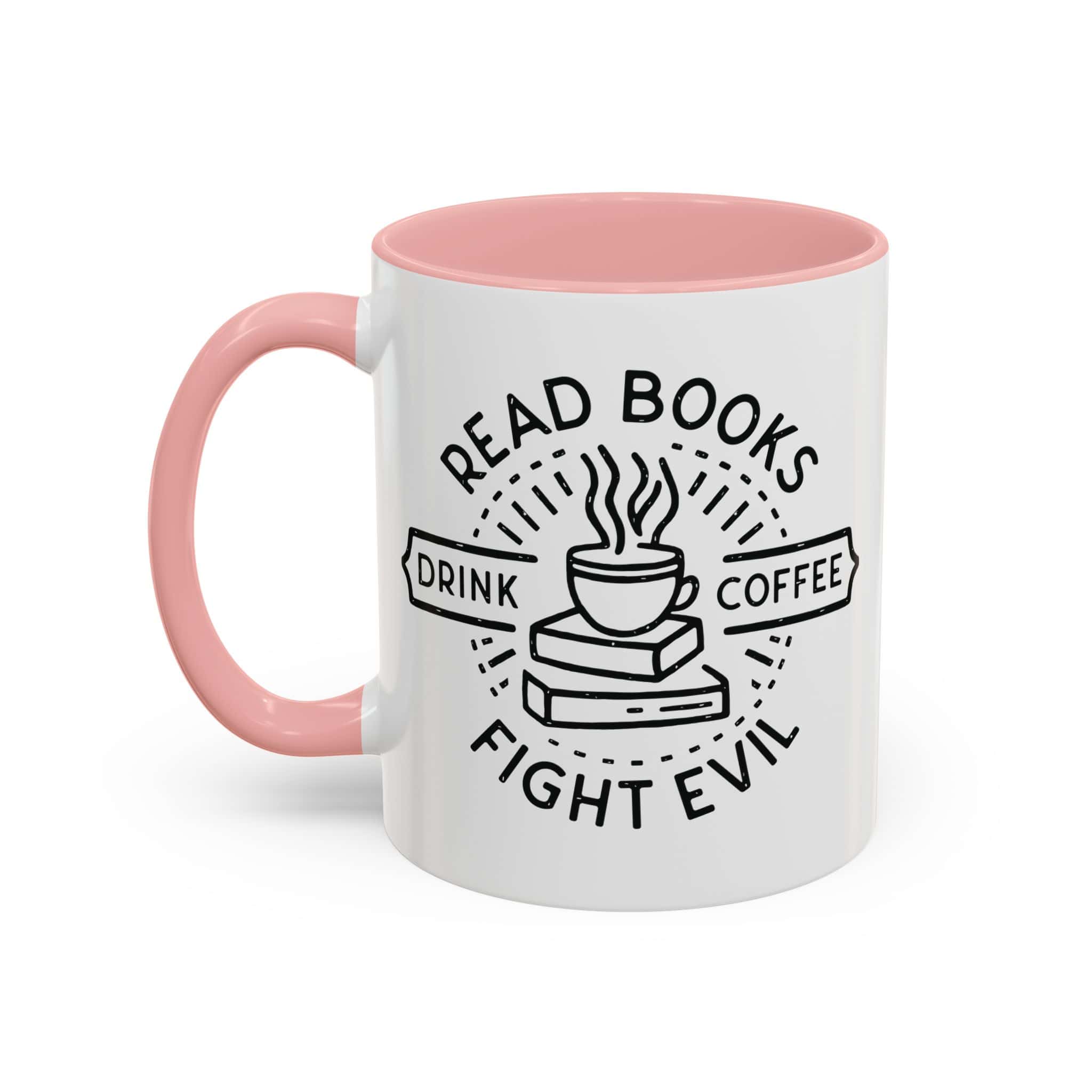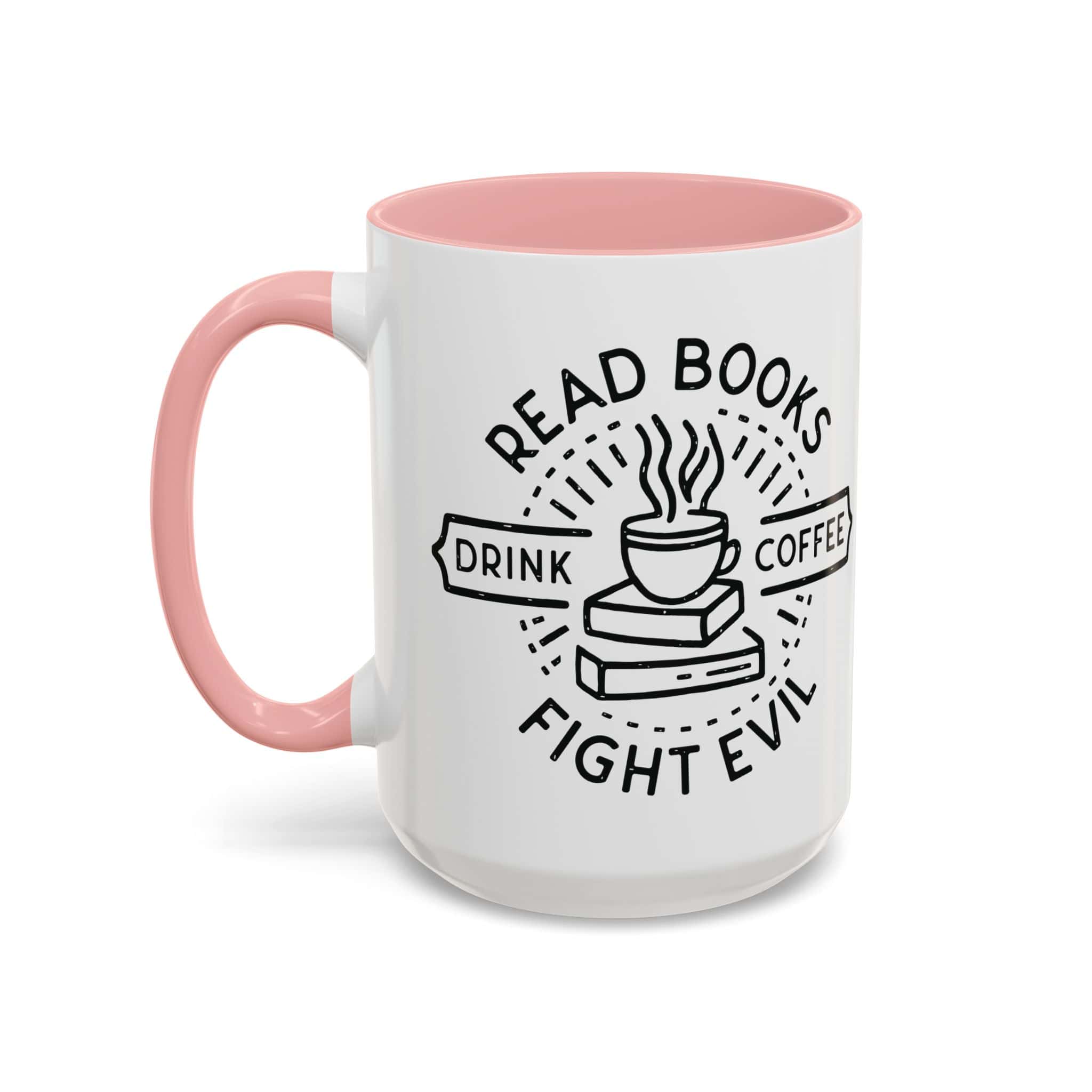 This Read Books, Drink Coffee, Fight Evil mug is the perfect daily companion for morning chapters, late-night reading sprints, and anyone whose to-do list includes “save the world (after coffee).”