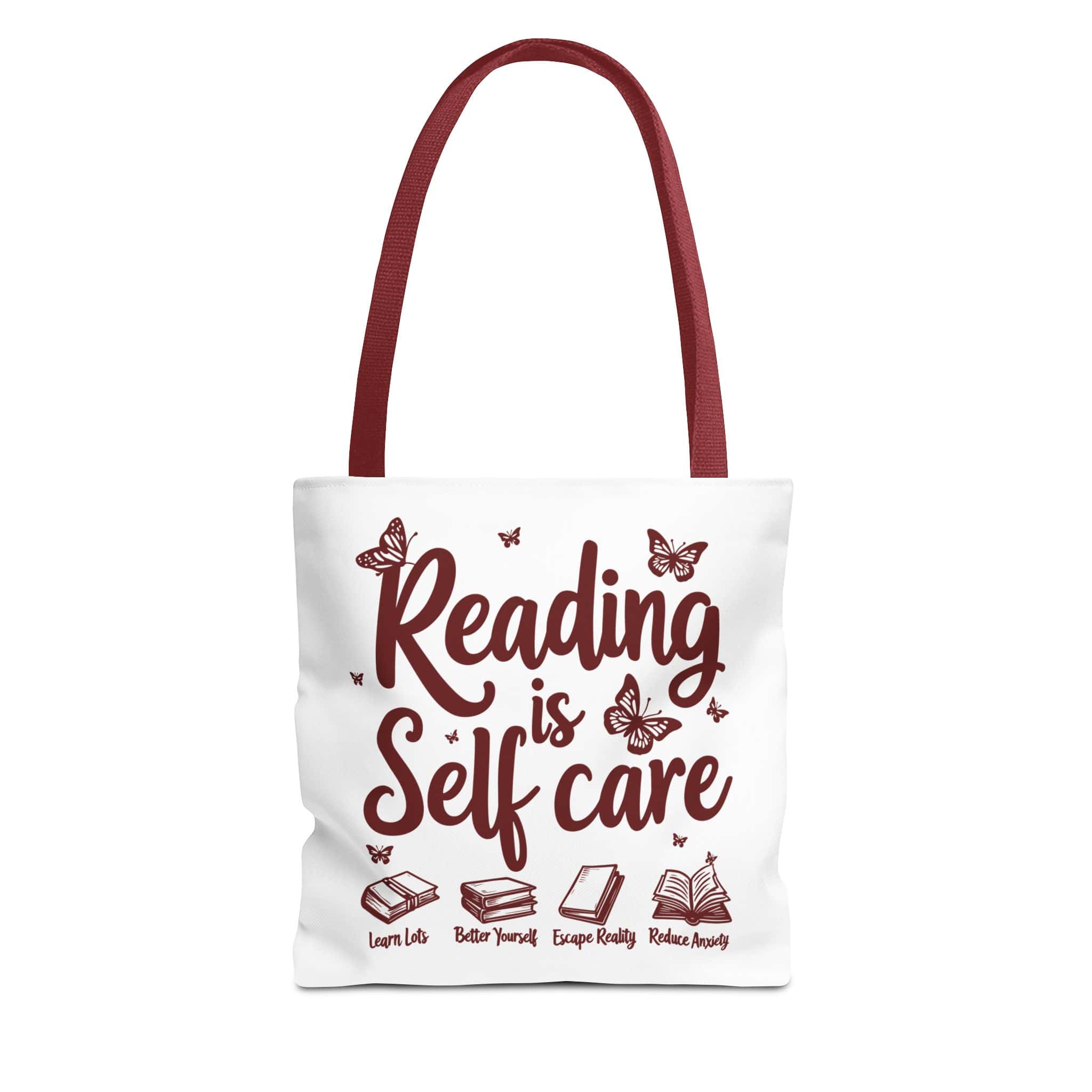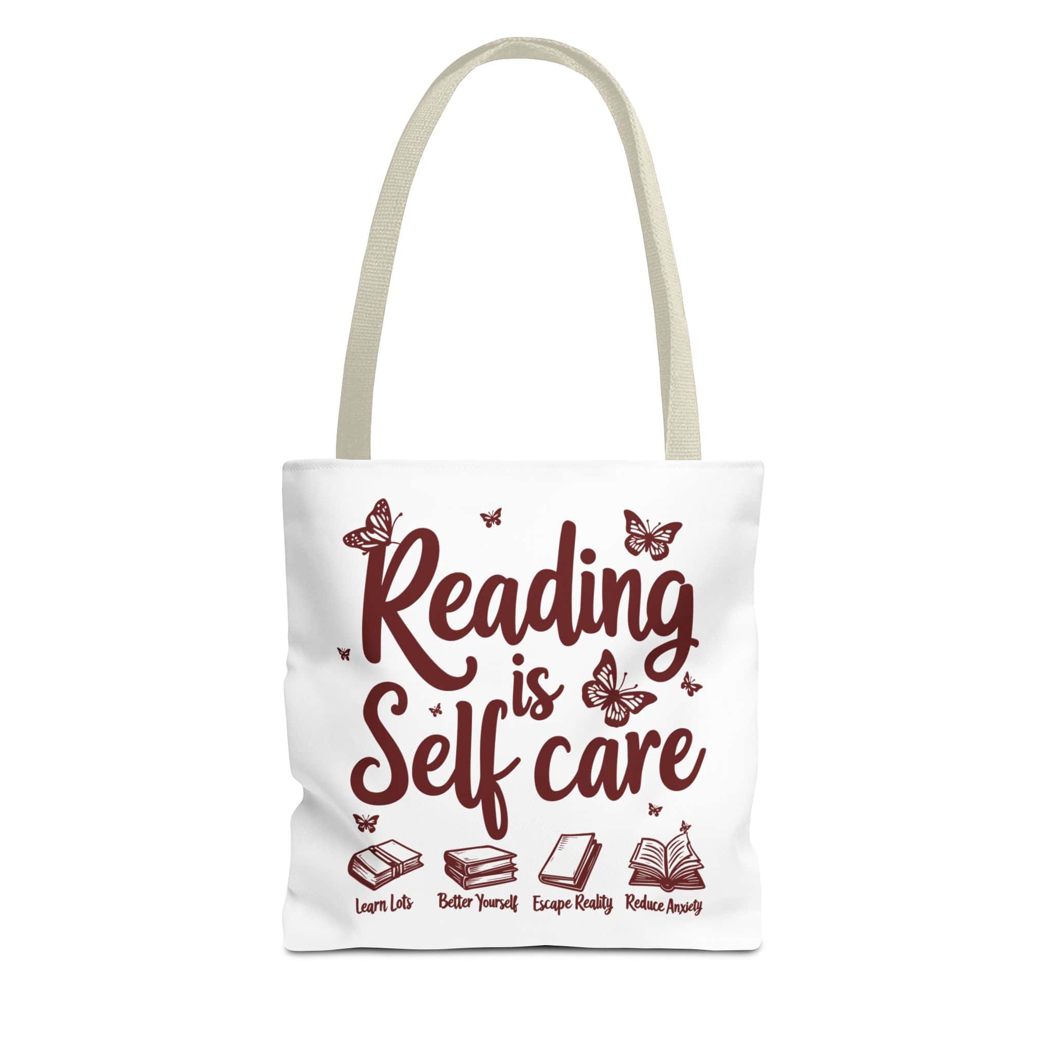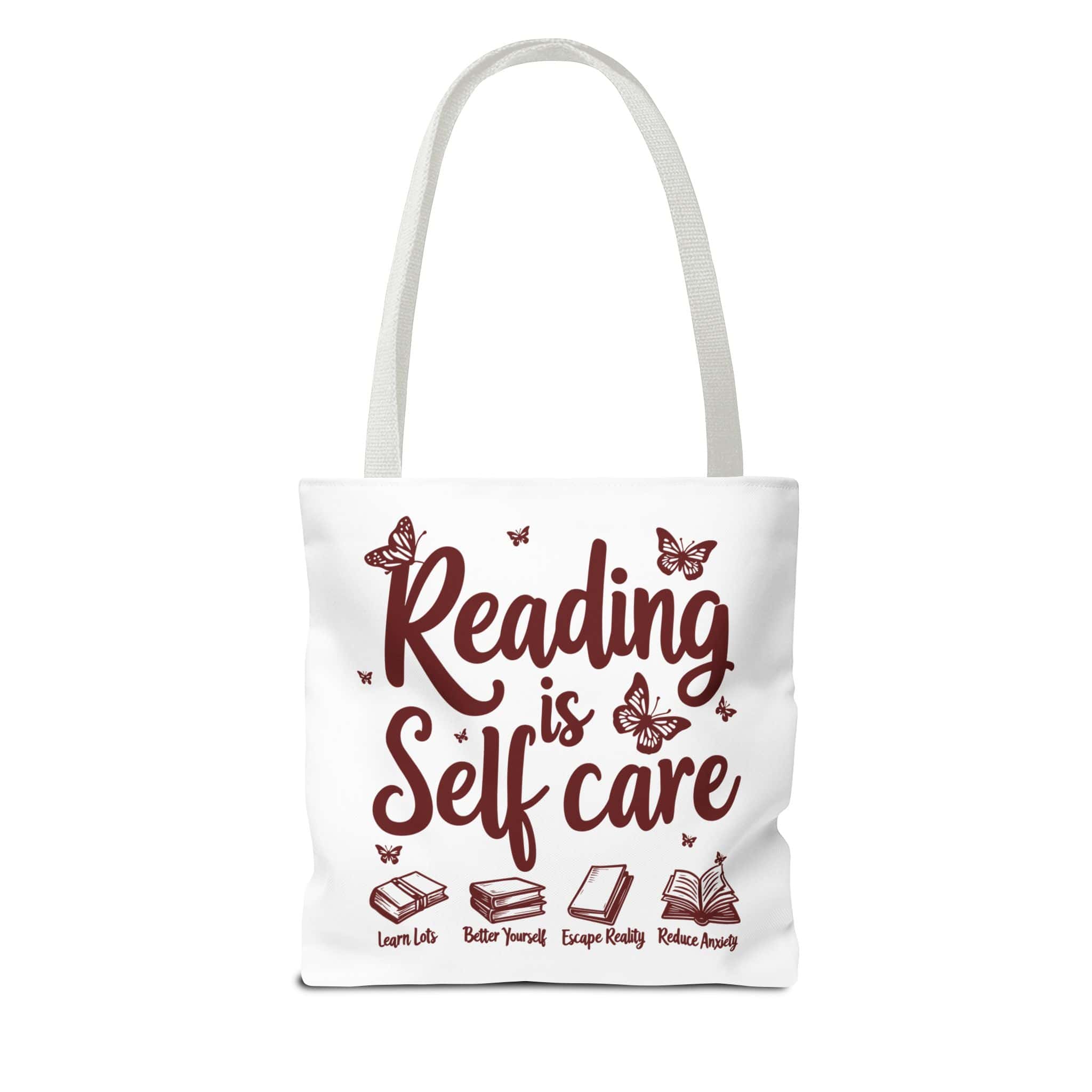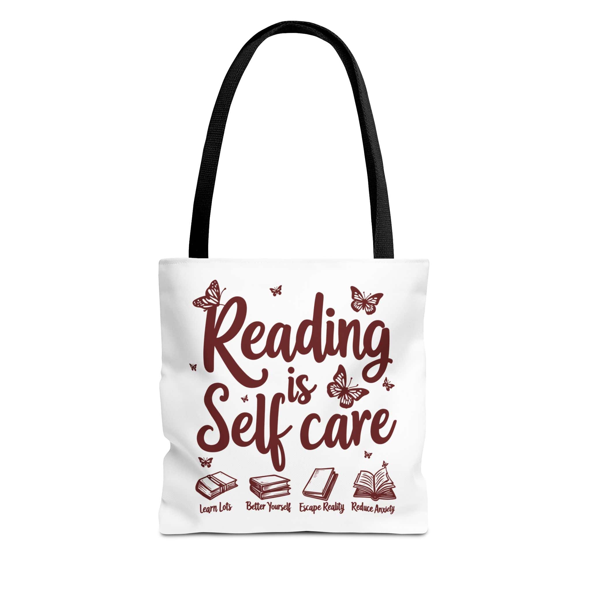 The Reading Is Self Care tote bag is made for readers who treat the library like therapy and the bookstore like a hobby that occasionally becomes a personality. With a durable body, reinforced handles, and spacious boxed corners, it’s ready for heavy book stacks and everyday errands.